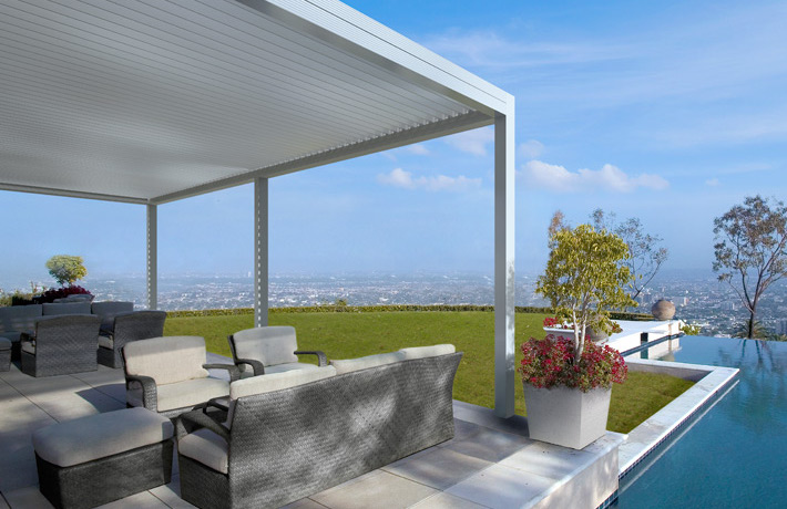 Tutte le pergole sono disponibili nelle soluzioni monomodulo e plurimodulo, con un numero personalizzabile di gambe portanti, per applicazioni su spazi di dimensioni diverse.